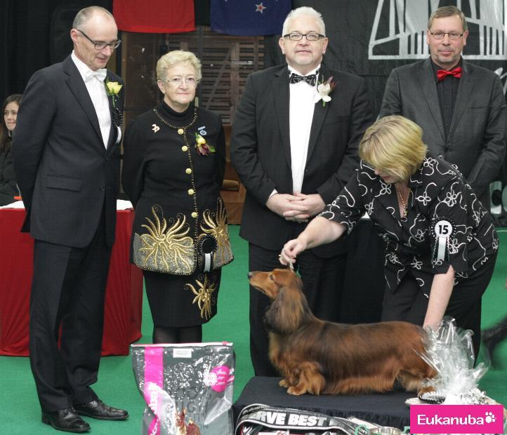 RUNNER-UP BEST IN CONTEST Aust. Gr. & NZ Supreme Ch. Keaton Kosciosko (Imp. Aust.) (Std. L.H. Dachshund) owned by Beth Warman & Jim & Lyndall Black