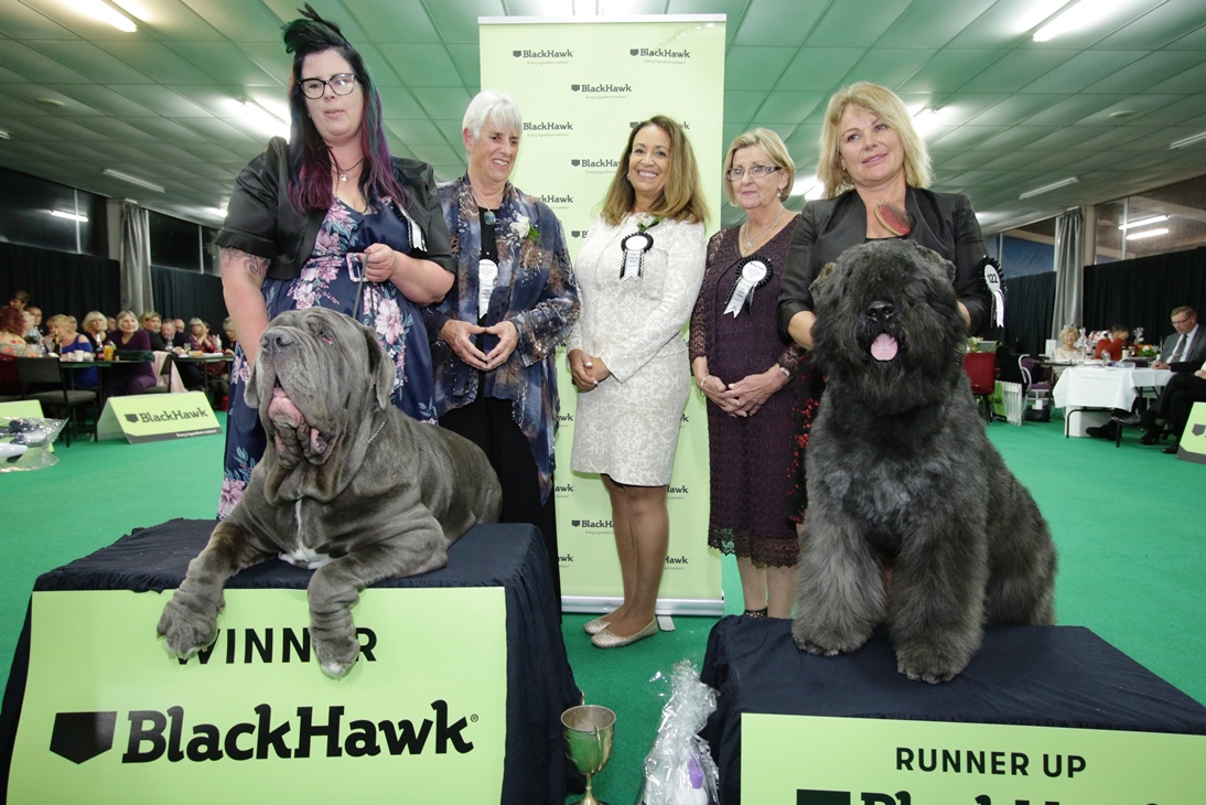 Ch Alpine As You Wish (Siberian Husky) owned by Melanie Quinn Ch. Benbridge Have I Told U Lately (Whippet) owned by Hank Faifua & Tony Fox QUARTER-FINALISTS Ch. Charlemagne Careless Wispa's (Great Dane) owned by Brian, Marilyn & Halley Tolley Ch. Newfashion Mind Your Manners (Imp. Aust.) (Newfoundland) owned by Jennifer Siegel Flandresfarm Baby Driver (Bouvier Des Flandres) owned by Teresa Lawrence Ch. Methyr Wanda Wait A Minute (Pembroke Welsh Corgi) owned by Lesley Chalmers WINNER PUPPY PLATE (SPONSORED BY CHARLES & JENNIFER MANNING) Ch. Ryandos San Fransisco (Lakeland Terrier) owned by R.A. Alcantara & R. & J. Styles RUNNER-UP PUPPY PLATE (SPONSORED BY CHARLES & JENNIFER MANNING) Kursharn Witches-Witch (Samoyed) owned by Julie Welles SUPREME TOY PUPPY Showbiz We'll Never Be Royals (Lowchen) owned by Alanya Limmer SUPREME TERRIER PUPPY Ch. Ryandos San Fransisco (Lakeland Terrier) owned by R.A. Alcantara & R. & J. Styles SUPREME GUNDOG PUPPY Cowanheights All Aces (Labrador Retriever) owned by Simon Monson SUPREME HOUND PUPPY Ch. Benbridge Have I Told U Lately (Whippet) owned by Hank Faifua & Tony Fox SUPREME WORKING DOG PUPPY Ch. Flandresfarm Califrnia Heat (Bouvier Des Flandres) owned by Teresa Lawrence SUPREME UTILITY DOG PUPPY Quake Down Under (Imp. Belg.)(Neapolitan Mastiff) owned by Linda Phillips SUPREME NON SPORTING PUPPY Ch. Charlemagne Careless Wispa's (Great Dane) owned by Brian, Marilyn & Halley Tolley BEST GENTLEMAN & DOG COMBINATION J.R. Alcantara and the Lakeland Terrier Ch. Ryandos San Fransisco BEST LADY & DOG COMBINATION Alanya Limmer and the Lowchen Showbiz We'll Never Be Royals SUPREME NZ BRED PUPPY Ch. Flandresfarm Califrnia Heat (Bouvier Des Flandres) owned by Teresa Lawrence SUPREME VISITOR PUPPY Ch. Flandresfarm Califrnia Heat (Bouvier Des Flandres) owned by Teresa Lawrence SUPREME PERSONALITY PUPPY Showbiz We'll Never Be Royals (Lowchen) owned by Alanya Limmer