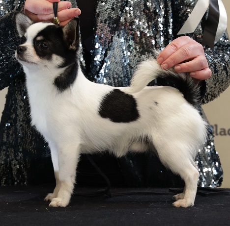 KITACO BEAM ME UP SCOTTY Breed: Chihuahua Smooth Coat Dog Birthdate & NZKC #: 25/05/2024 03373-2024 Sire: Ch Cry Havoc at Warlaven Dam : Kitco Quantum Of Solace Breeder: Tracey Tonkin Owner: Tracey Tonkin HANDLER AT CONTEST: Tracey Tonkin