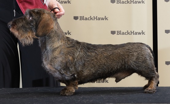 SZAMOR HENDRICKS GIN Breed: Dachshund Wire Haired Dog Birthdate & NZKC#: 28/06/2023 04193-2023 Sire: Aust. Ch. Bonoria's Cincinnati (Aust.) Dam : Ch. Misento Double Trouble at Szamor Breeder: Nicky Caddick Owner: Chris Wilson HANDLER AT CONTEST: Chris Wilson