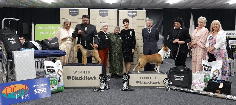SEMI-FINALISTS Kitaco Beam Me Up Scotty (Chihuahua Smooth Coat) owned by Tracey Tonkin Romanoc Perfect Rhythm (Shetland Sheepdog) owned by Carolyn Lewis & Rosemary Richards QUARTER-FINALISTS Szamor Hendrichs Gin (Dachshund Wire Haired) owned by Chris Wilson Weissenberg Image Of Alady at Wachtel-Berg (Weimaraner) owned by Susan Allison Ch. Konan When Stars Collide (Cocker Spaniel) owned by Zoe Hogg Brynroi Bob Rescure Me (Lhasa Apso) owned by Anna Ancell & D. Gilchrist WINNER PUPPY PLATE (SPONSORED BY CHARLES & JENNIFER MANNING) Ch. Merthyr Wanda Wait And See (Pembroke Welsh Corgi) owned by Lesley Chalmers & Karen McIntyre RUNNER-UP PUPPY PLATE (SPONSORED BY CHARLES & JENNIFER MANNING) Ch. Inka I'll Be Judge at Fairenvy (Border Collie) owned by Angela Sime SUPREME TOY PUPPY Kitaco Beam Me Up Scotty (Chihuahua Smooth Coat) owned by Tracey Tonkin SUPREME TERRIER PUPPY Ch. Kantar Daredevil at Mankoko (Lakeland Terrier) owned by Charmaine & Robert Alcantara SUPREME GUNDOG PUPPY Ch. Konan When Stars Collide (Cocker Spaniel) owned by Zoe Hogg SUPREME HOUND PUPPY Szamor Hendrichs Gin (Dachshund Wire Haired) owned by Chris Wilson SUPREME WORKING DOG PUPPY Romanoc Perfect Rhythm (Shetland Sheepdog) owned by Carolyn Lewis & Rosemary Richards SUPREME UTILITY DOG PUPPY Empyre Royal Flush (Rottweiler) owned by Sam Orlowski SUPREME NON SPORTING PUPPY Brynroi Bob Rescure Me (Lhasa Apso) owned by Anna Ancell & D. Gilchrist BEST GENTLEMAN & DOG COMBINATION Jase Orlowski and the Rottweiler Ch. Kauriland Rebel Law at Brookvale BEST LADY & DOG COMBINATION Solitaire Robertson and the Miniature Smooth Dachshund Ch. Essare Send In The Clowns SUPREME NZ BRED PUPPY Ch. Kantar Daredevil at Mankoko (Lakeland Terrier) owned by Charmaine & Robert Alcantara SUPREME VISITOR PUPPY Romanoc Perfect Rhythm (Shetland Sheepdog) owned by Carolyn Lewis & Rosemary Richards SUPREME PERSONALITY PUPPY Kitaco Beam Me Up Scotty (Chihuahua Smooth Coat) owned by Tracey Tonkin